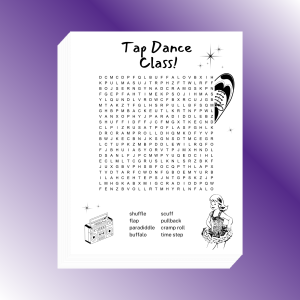 theme: Tap Dance Class word search | Printable PDF 8.5×11 inch | PUZZLE ID: 078