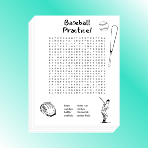 theme: Baseball practice word search | Printable PDF 8.5×11 inch | PUZZLE ID: 022