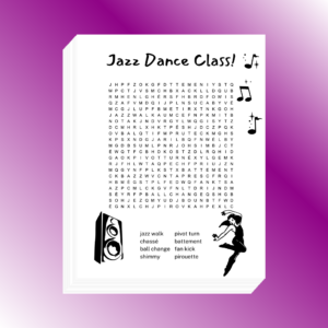 theme: Jazz Dance Class word search | Printable PDF 8.5×11 inch | PUZZLE ID: 028