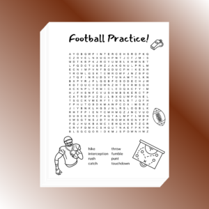 theme: Football practice word search | Printable PDF 8.5×11 inch | PUZZLE ID: 048