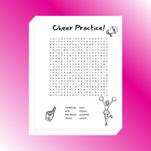 theme: Cheer Practice word search | Printable PDF 8.5×11 inch | PUZZLE ID: 050