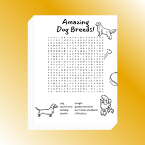 theme: Amazing Dog Breeds word search | Printable PDF 8.5×11 inch | PUZZLE ID: 068