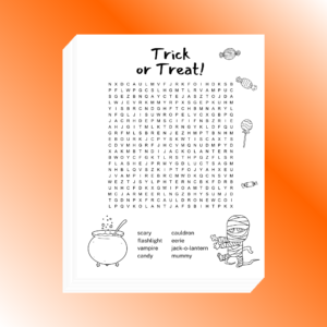 theme: Trick or Treat word search | Printable PDF 8.5×11 inch | PUZZLE ID: 070