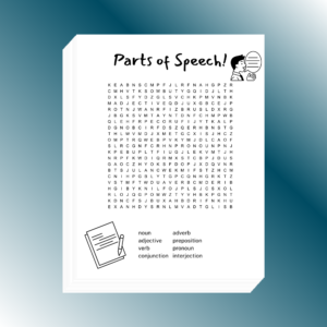 theme: Parts of Speech word search | Printable PDF 8.5×11 inch | PUZZLE ID: 045