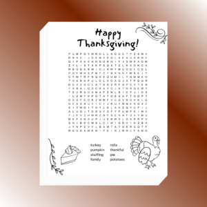 theme: Happy Thanksgiving word search | Printable PDF 8.5×11 inch | PUZZLE ID: 003